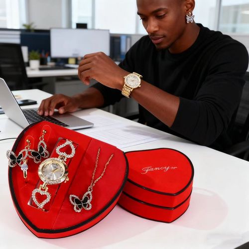 Heart Shaped Butterfly & Crystal Watch Jewelry Set