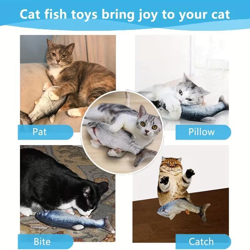 🎁 Best Gift for Cats! Simulation Flapping Fish Toy with Touch Sensor - Flops When Touched 🎵